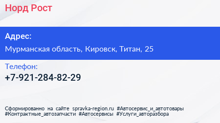 Норд-Рост по адресу Мурманская область, Кировск, Титан, 25 в дальнейшем Организация, размещена в следующих категориях: