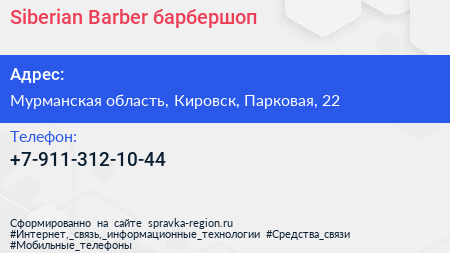 Siberian Barber, барбершоп по адресу Мурманская область, Кировск, Парковая, 22 в дальнейшем Организация, размещена в следующих категориях: