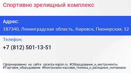 Спортивно-зрелищный комплекс по адресу 187340, Ленинградская область, Кировск, Пионерская, 12 в дальнейшем Организация, размещена в следующих категориях: