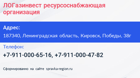 ЛОГазинвест, ресурсоснабжающая организация по адресу 187340, Ленинградская область, Кировск, Победы, 38г в дальнейшем Организация, размещена в следующих категориях: