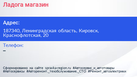 Ладога, магазин по адресу 187340, Ленинградская область, Кировск, Краснофлотская, 20 в дальнейшем Организация, размещена в следующих категориях: