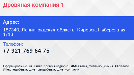 Дровяная компания №1 по адресу 187340, Ленинградская область, Кировск, Набережная, 1/13 в дальнейшем Организация, размещена в следующих категориях: