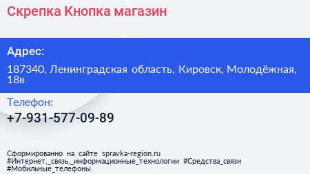 Скрепка & Кнопка, магазин по адресу 187340, Ленинградская область, Кировск, Молодёжная, 18в в дальнейшем Организация, размещена в следующих категориях: