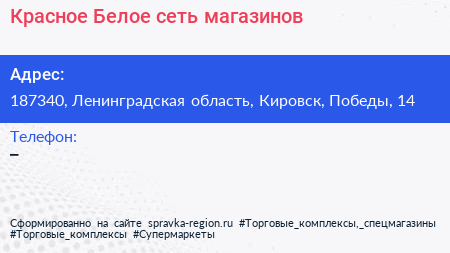 Красное & Белое, сеть магазинов по адресу 187340, Ленинградская область, Кировск, Победы, 14 в дальнейшем Организация, размещена в следующих категориях: