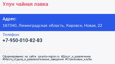 Улун, чайная лавка по адресу 187340, Ленинградская область, Кировск, Новая, 22 в дальнейшем Организация, размещена в следующих категориях: