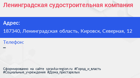 Ленинградская судостроительная компания по адресу 187340, Ленинградская область, Кировск, Северная, 12 в дальнейшем Организация, размещена в следующих категориях: