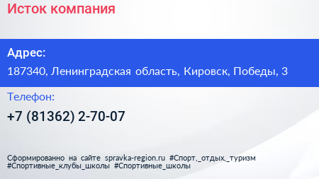 Исток, компания по адресу 187340, Ленинградская область, Кировск, Победы, 3 в дальнейшем Организация, размещена в следующих категориях: