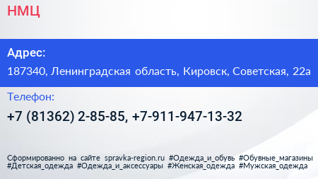 НМЦ по адресу 187340, Ленинградская область, Кировск, Советская, 22а в дальнейшем Организация, размещена в следующих категориях: