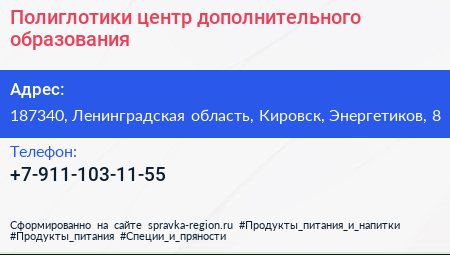 Полиглотики, центр дополнительного образования по адресу 187340, Ленинградская область, Кировск, Энергетиков, 8 в дальнейшем Организация, размещена в следующих категориях: