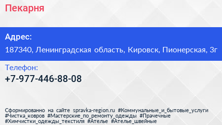 Пекарня по адресу 187340, Ленинградская область, Кировск, Пионерская, 3г в дальнейшем Организация, размещена в следующих категориях: