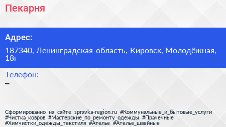 Пекарня по адресу 187340, Ленинградская область, Кировск, Молодёжная, 18г в дальнейшем Организация, размещена в следующих категориях: