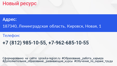 Новый ресурс по адресу 187340, Ленинградская область, Кировск, Новая, 1 в дальнейшем Организация, размещена в следующих категориях: