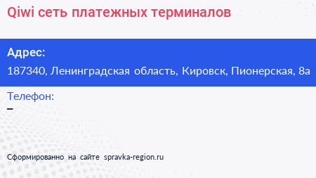 Qiwi, сеть платежных терминалов по адресу 187340, Ленинградская область, Кировск, Пионерская, 8а в дальнейшем Организация, размещена в следующих категориях: