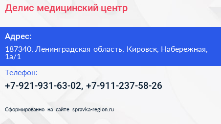 Делис, медицинский центр по адресу 187340, Ленинградская область, Кировск, Набережная, 1а/1 в дальнейшем Организация, размещена в следующих категориях: