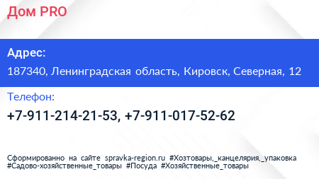 Дом PRO по адресу 187340, Ленинградская область, Кировск, Северная, 12 в дальнейшем Организация, размещена в следующих категориях: