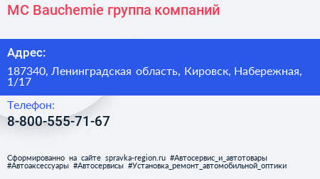 MC-Bauchemie, группа компаний по адресу 187340, Ленинградская область, Кировск, Набережная, 1/17 в дальнейшем Организация, размещена в следующих категориях: