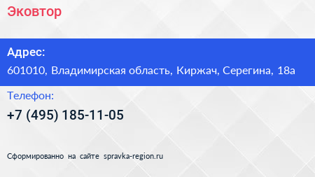 Эковтор по адресу 601010, Владимирская область, Киржач, Серегина, 18а в дальнейшем Организация, размещена в следующих категориях: