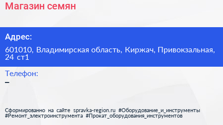 Магазин семян по адресу 601010, Владимирская область, Киржач, Привокзальная, 24 ст1 в дальнейшем Организация, размещена в следующих категориях: