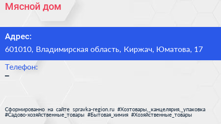 Мясной дом по адресу 601010, Владимирская область, Киржач, Юматова, 17 в дальнейшем Организация, размещена в следующих категориях: