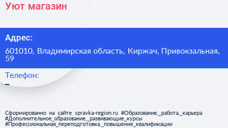 Уют, магазин по адресу 601010, Владимирская область, Киржач, Привокзальная, 59 в дальнейшем Организация, размещена в следующих категориях:
