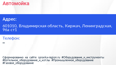 Автомойка по адресу 601010, Владимирская область, Киржач, Ленинградская, 96а ст1 в дальнейшем Организация, размещена в следующих категориях: