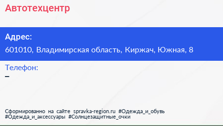 Автотехцентр по адресу 601010, Владимирская область, Киржач, Южная, 8 в дальнейшем Организация, размещена в следующих категориях: