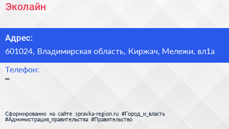 Эколайн по адресу 601024, Владимирская область, Киржач, Мележи, вл1а в дальнейшем Организация, размещена в следующих категориях:
