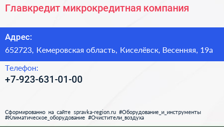 Главкредит, микрокредитная компания по адресу 652723, Кемеровская область, Киселёвск, Весенняя, 19а в дальнейшем Организация, размещена в следующих категориях: