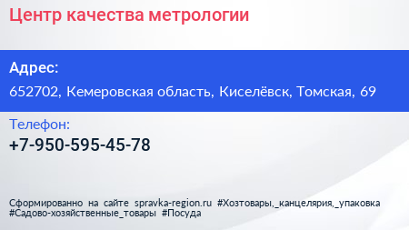 Центр качества метрологии по адресу 652702, Кемеровская область, Киселёвск, Томская, 69 в дальнейшем Организация, размещена в следующих категориях: