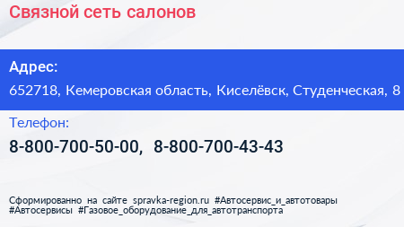 Связной, сеть салонов по адресу 652718, Кемеровская область, Киселёвск, Студенческая, 8 в дальнейшем Организация, размещена в следующих категориях: