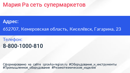 Мария-Ра, сеть супермаркетов по адресу 652707, Кемеровская область, Киселёвск, Гагарина, 23 в дальнейшем Организация, размещена в следующих категориях: