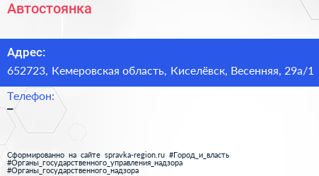 Автостоянка по адресу 652723, Кемеровская область, Киселёвск, Весенняя, 29а/1 в дальнейшем Организация, размещена в следующих категориях: