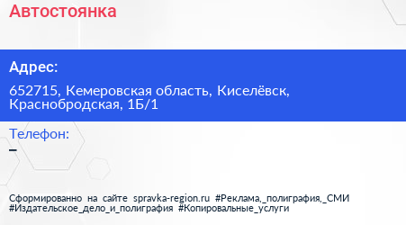 Автостоянка по адресу 652715, Кемеровская область, Киселёвск, Краснобродская, 1Б/1 в дальнейшем Организация, размещена в следующих категориях: