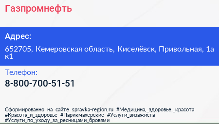 Газпромнефть по адресу 652705, Кемеровская область, Киселёвск, Привольная, 1а к1 в дальнейшем Организация, размещена в следующих категориях: