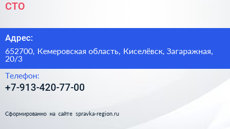 СТО по адресу 652700, Кемеровская область, Киселёвск, Загаражная, 20/3 в дальнейшем Организация, размещена в следующих категориях: