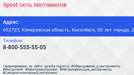 5post, сеть постаматов по адресу 652723, Кемеровская область, Киселёвск, 50 лет города, 2а в дальнейшем Организация, размещена в следующих категориях: