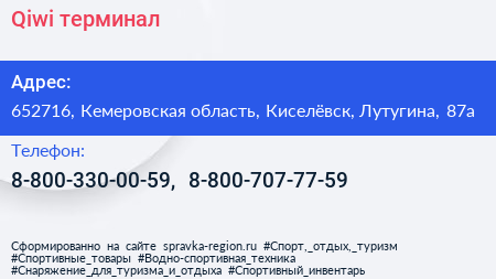 Qiwi, терминал по адресу 652716, Кемеровская область, Киселёвск, Лутугина, 87а в дальнейшем Организация, размещена в следующих категориях:
