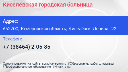 Киселёвская городская больница по адресу 652700, Кемеровская область, Киселёвск, Ленина, 22 в дальнейшем Организация, размещена в следующих категориях: