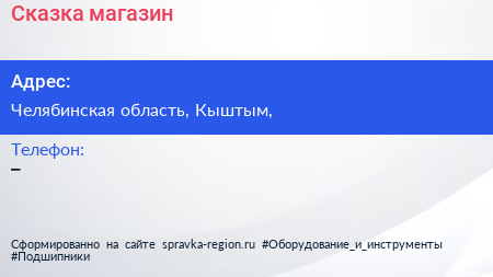 Сказка, магазин по адресу Челябинская область, Кыштым, в дальнейшем Организация, размещена в следующих категориях: