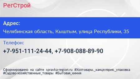 РегСтрой по адресу Челябинская область, Кыштым, улица Республики, 35 в дальнейшем Организация, размещена в следующих категориях: