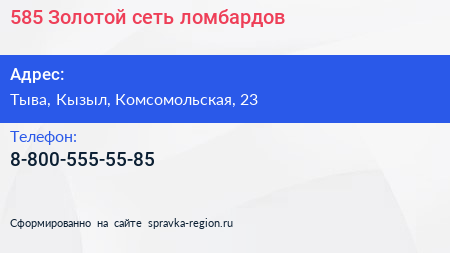 585*Золотой, сеть ломбардов по адресу Тыва, Кызыл, Комсомольская, 23 в дальнейшем Организация, размещена в следующих категориях: