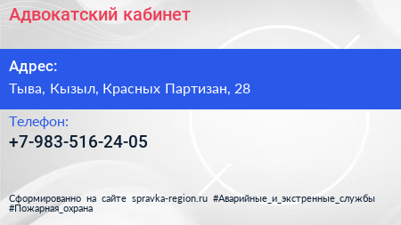 Адвокатский кабинет по адресу Тыва, Кызыл, Красных Партизан, 28 в дальнейшем Организация, размещена в следующих категориях: