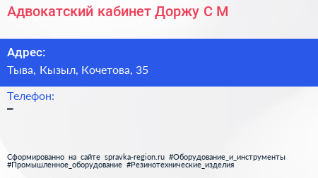 Адвокатский кабинет Доржу С.М. по адресу Тыва, Кызыл, Кочетова, 35 в дальнейшем Организация, размещена в следующих категориях: