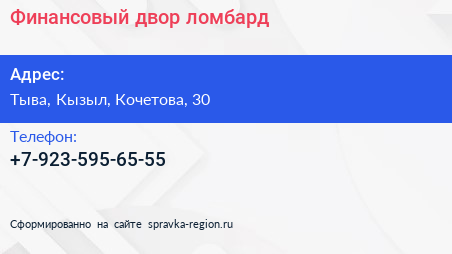 Финансовый двор, ломбард по адресу Тыва, Кызыл, Кочетова, 30 в дальнейшем Организация, размещена в следующих категориях: