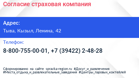 Согласие, страховая компания по адресу Тыва, Кызыл, Ленина, 42 в дальнейшем Организация, размещена в следующих категориях: