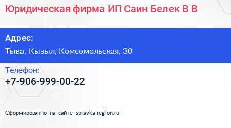 Юридическая фирма, ИП Саин-Белек В.В. в Кызыле