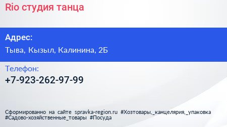 Rio, студия танца по адресу Тыва, Кызыл, Калинина, 2Б в дальнейшем Организация, размещена в следующих категориях: