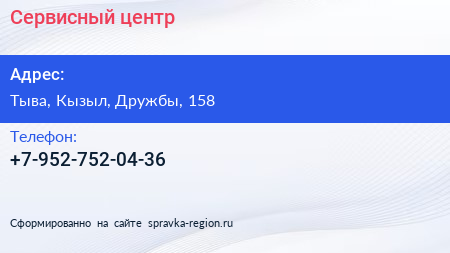 Сервисный центр по адресу Тыва, Кызыл, Дружбы, 158 в дальнейшем Организация, размещена в следующих категориях: