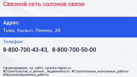 Связной, сеть салонов связи по адресу Тыва, Кызыл, Ленина, 28 в дальнейшем Организация, размещена в следующих категориях: