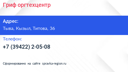 Гриф, оргтехцентр по адресу Тыва, Кызыл, Титова, 36 в дальнейшем Организация, размещена в следующих категориях: